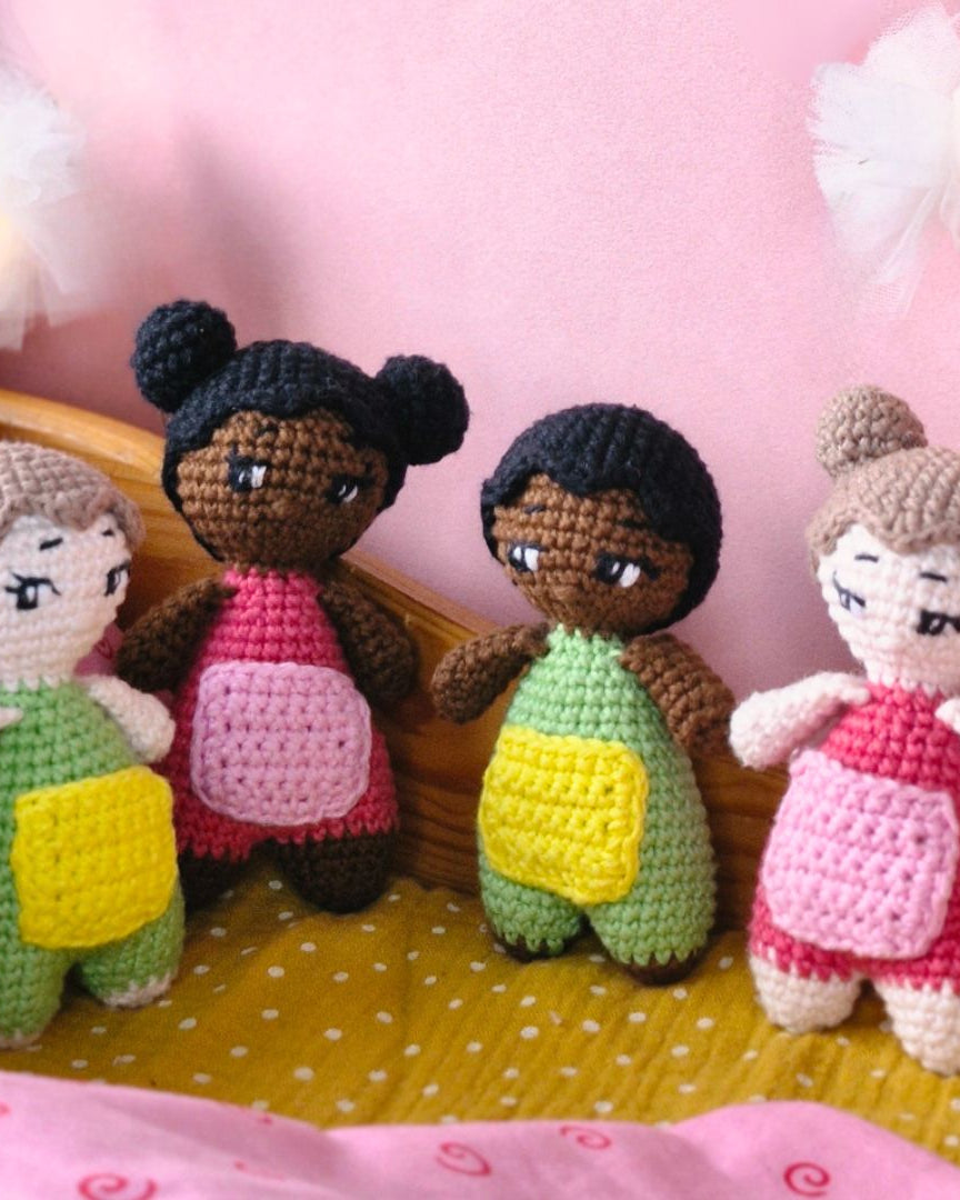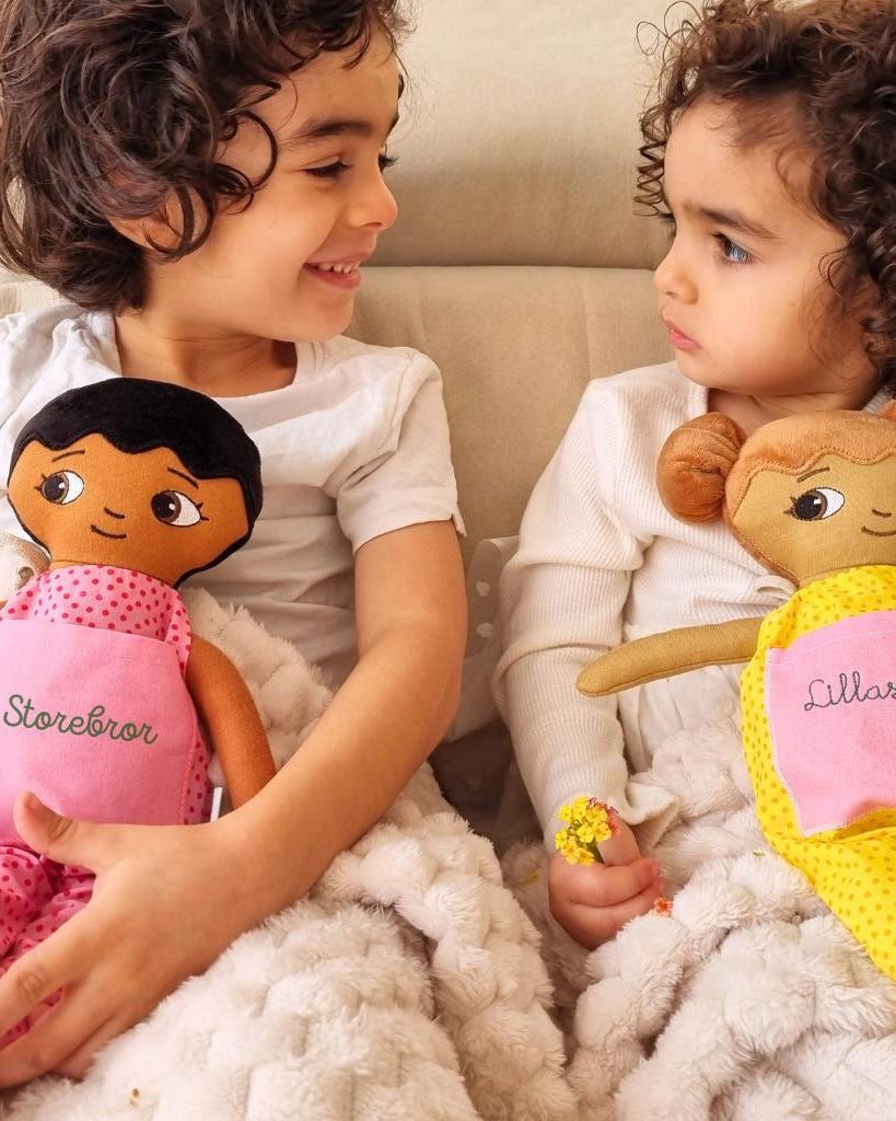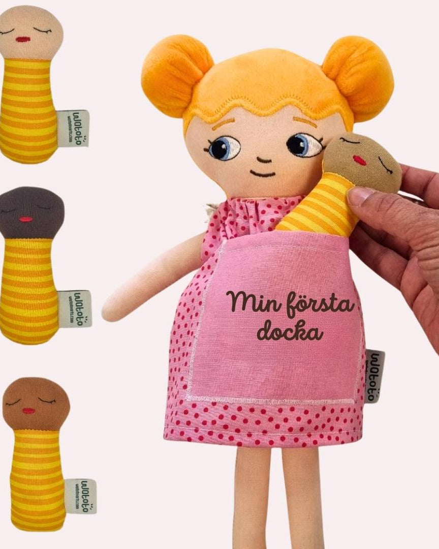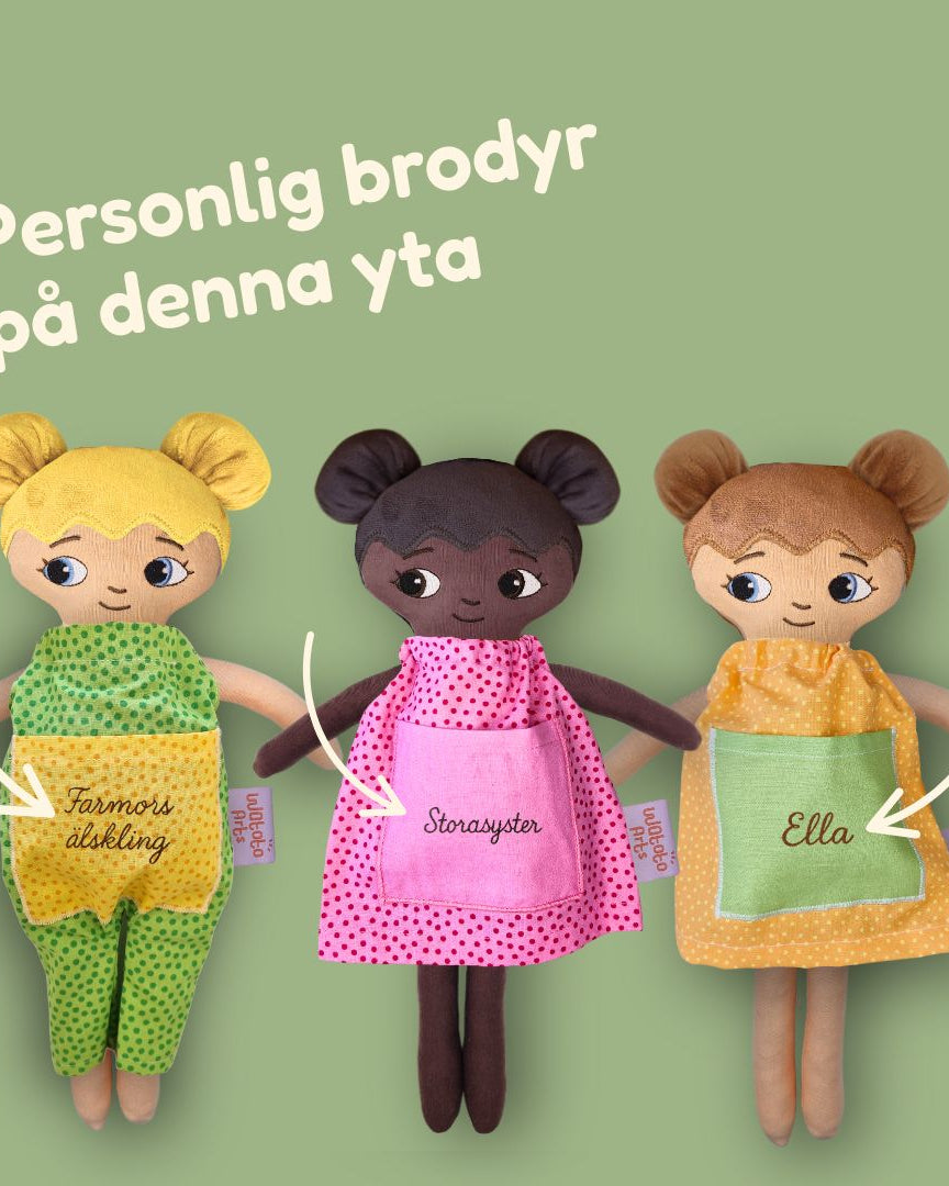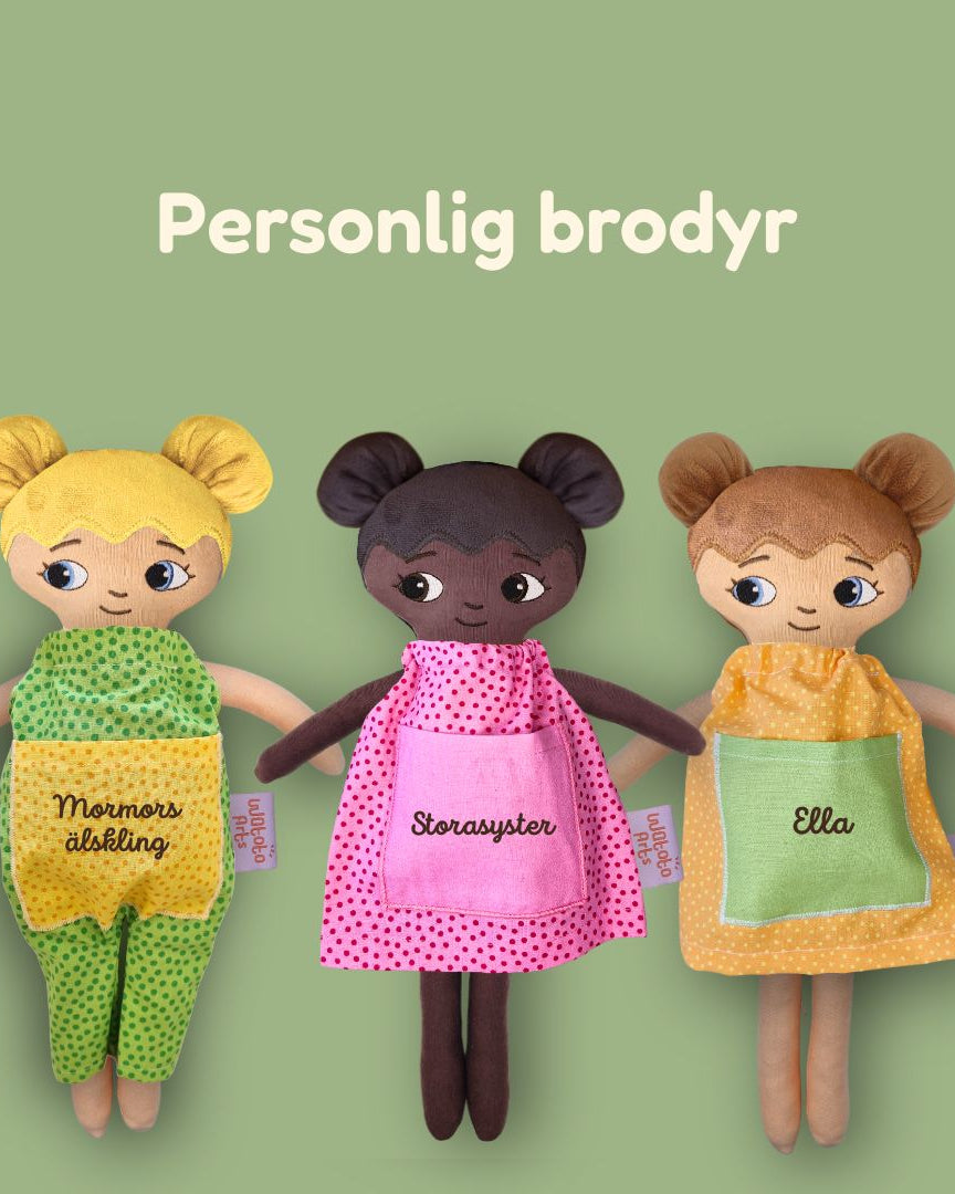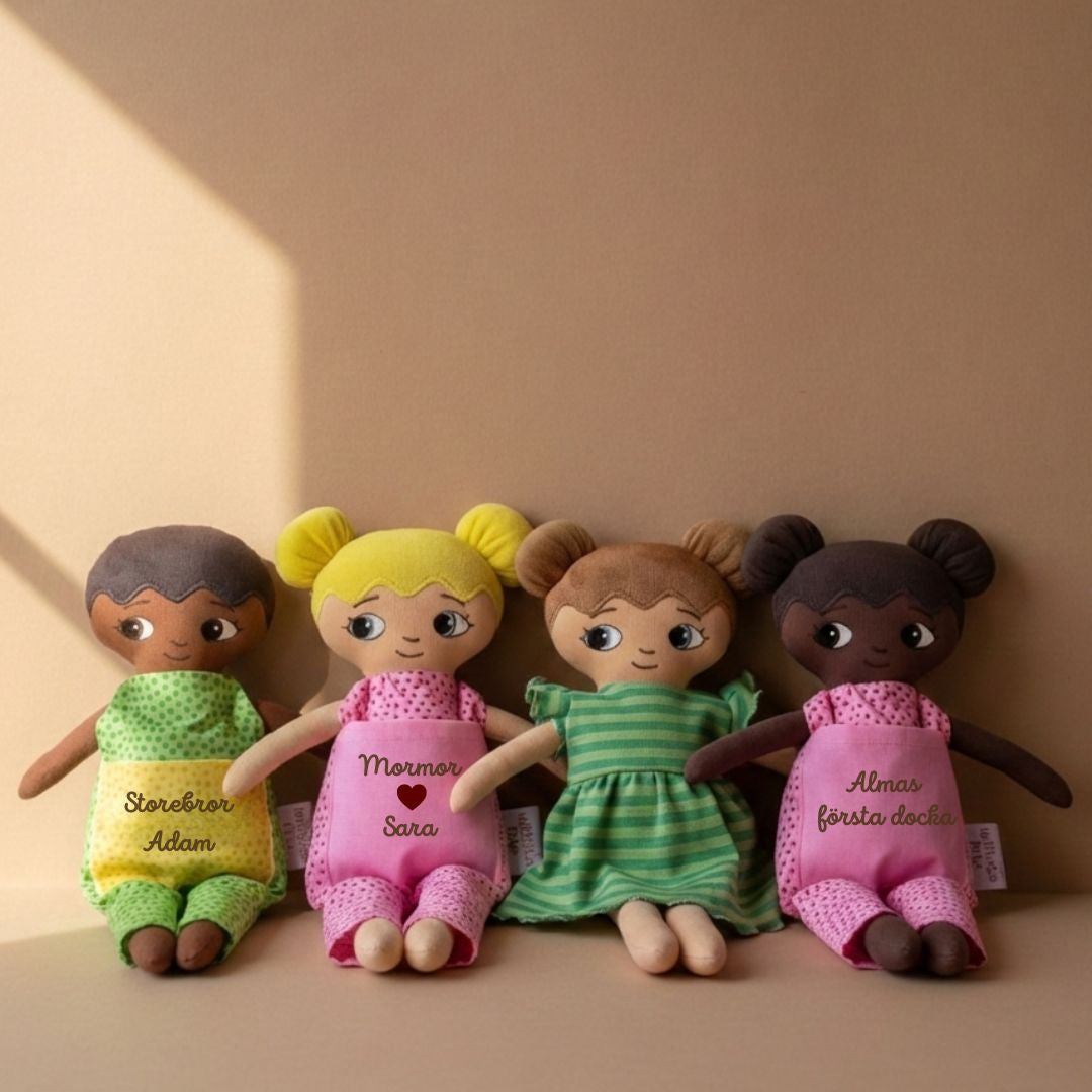 Vi är ett familjeföretag som designar och producerar dockor med fokus på representation, trygghet och lekglädje.