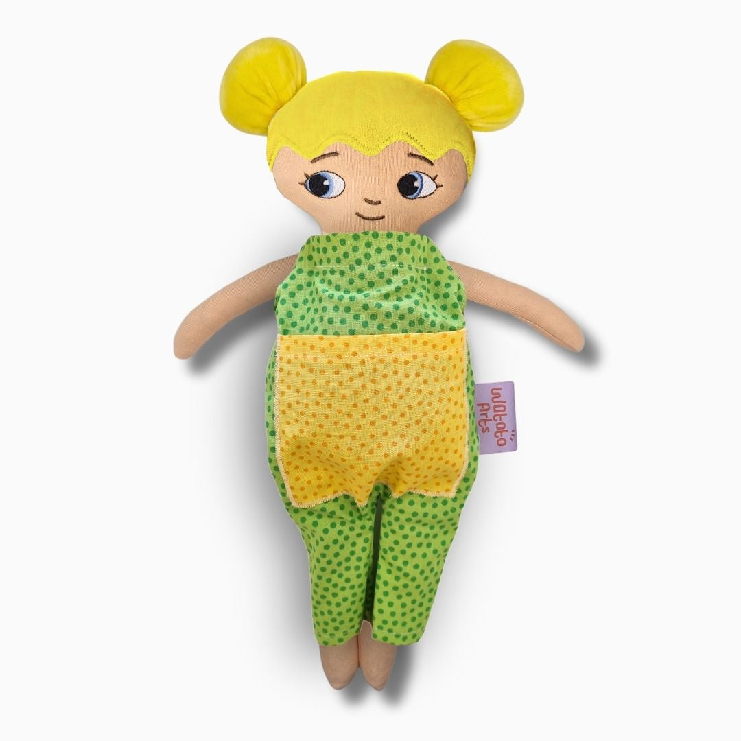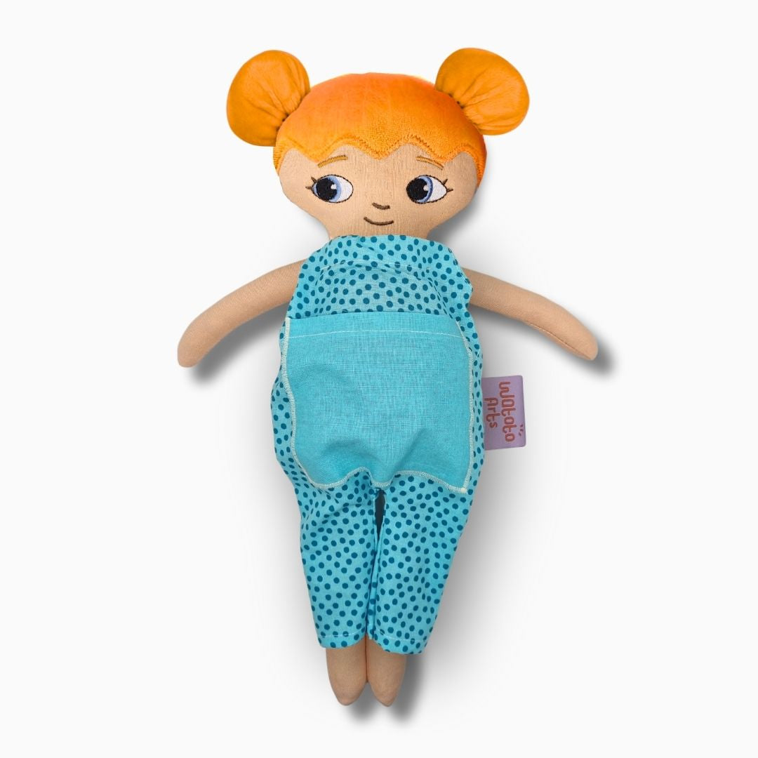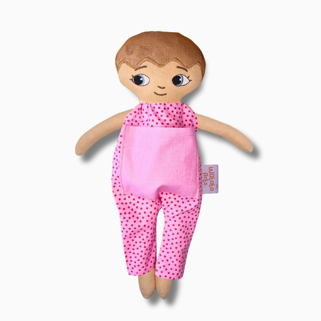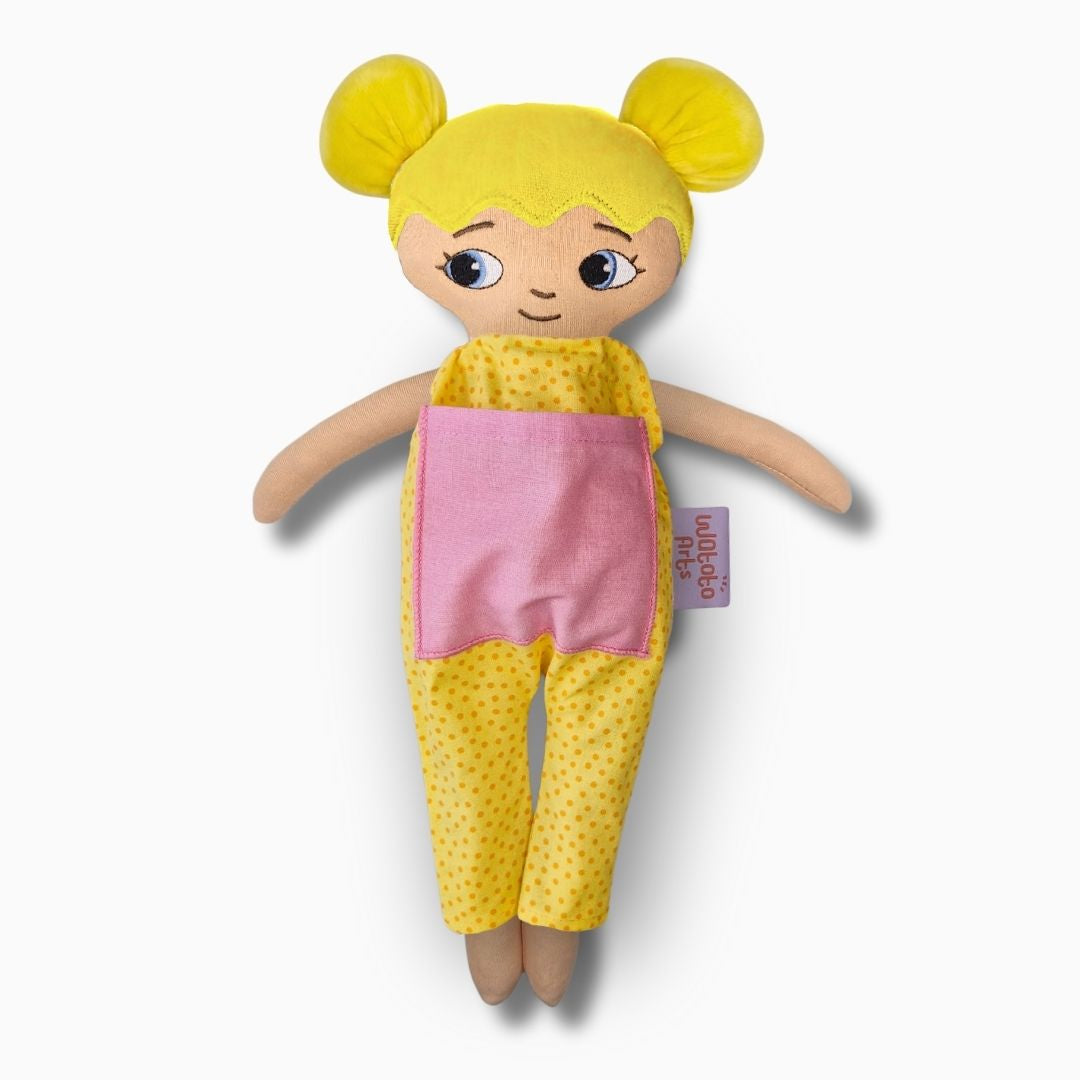 Dockan är bedårande och välgjord och blev mycket uppskattad av mitt barnbarn. Ett stort plus var lillasyster i fickan på magen. Särskilt med tanke på att lillasyster kommer när som helst så blir det abstrakta mer förståeligt när man kan berätta, leka och rollspela. Ett till plus är att dockan är så lik barnbarnet att hon kan identifiera sig med den och kommer ha mycket glädje av den under sin uppväxt.
