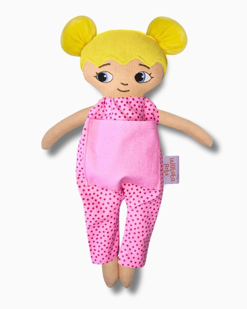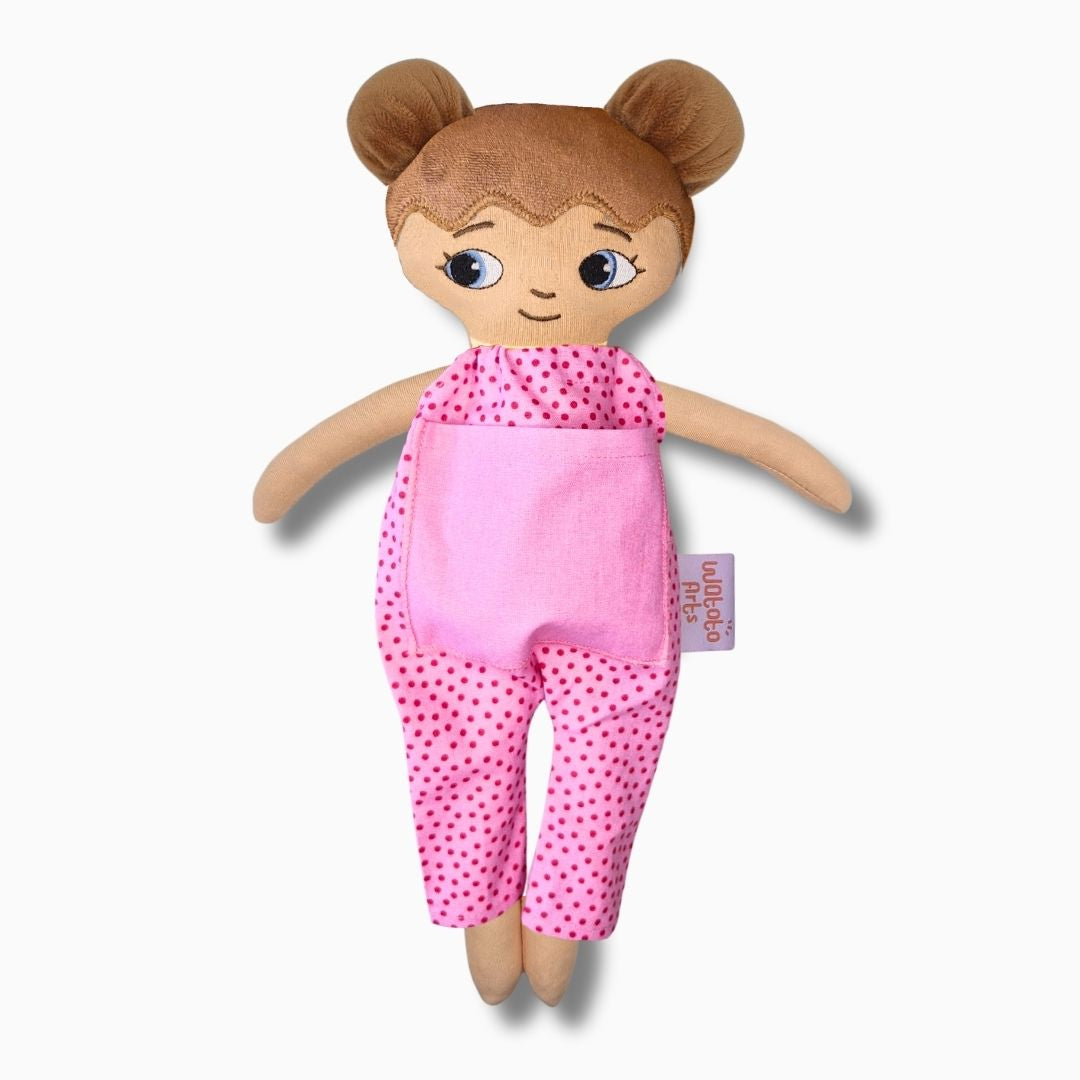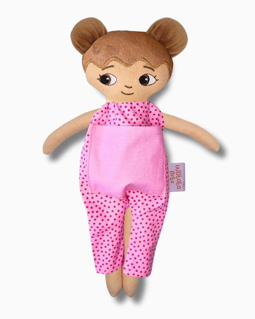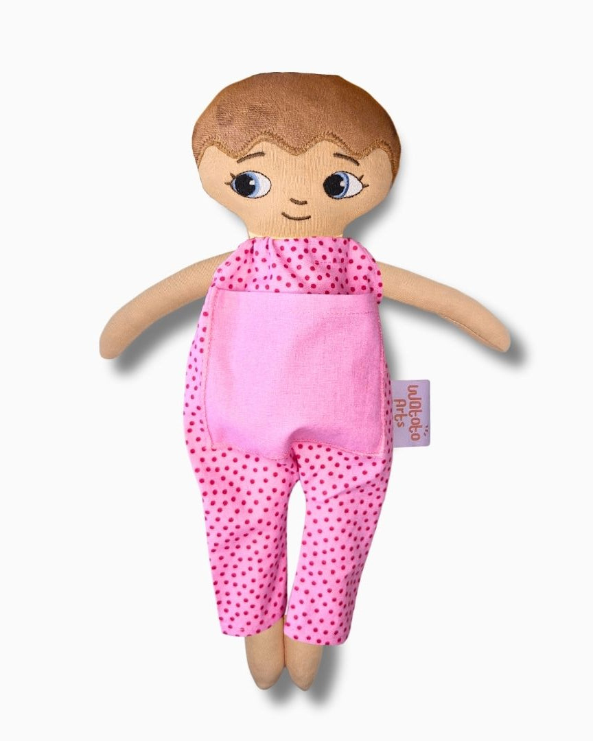 Dockan är bedårande och välgjord och blev mycket uppskattad av mitt barnbarn. Ett stort plus var lillasyster i fickan på magen. Särskilt med tanke på att lillasyster kommer när som helst så blir det abstrakta mer förståeligt när man kan berätta, leka och rollspela. Ett till plus är att dockan är så lik barnbarnet att hon kan identifiera sig med den och kommer ha mycket glädje av den under sin uppväxt.