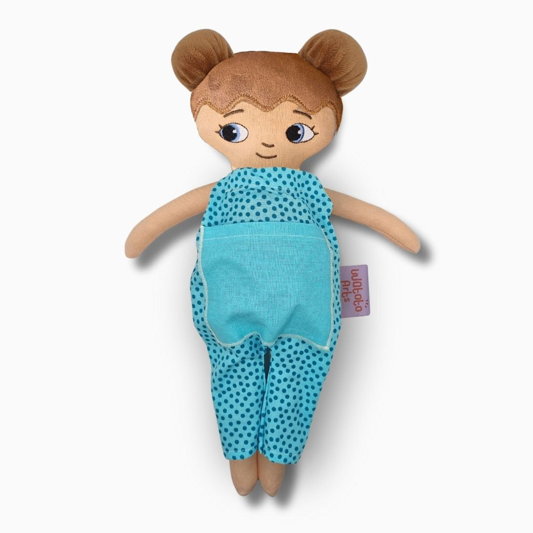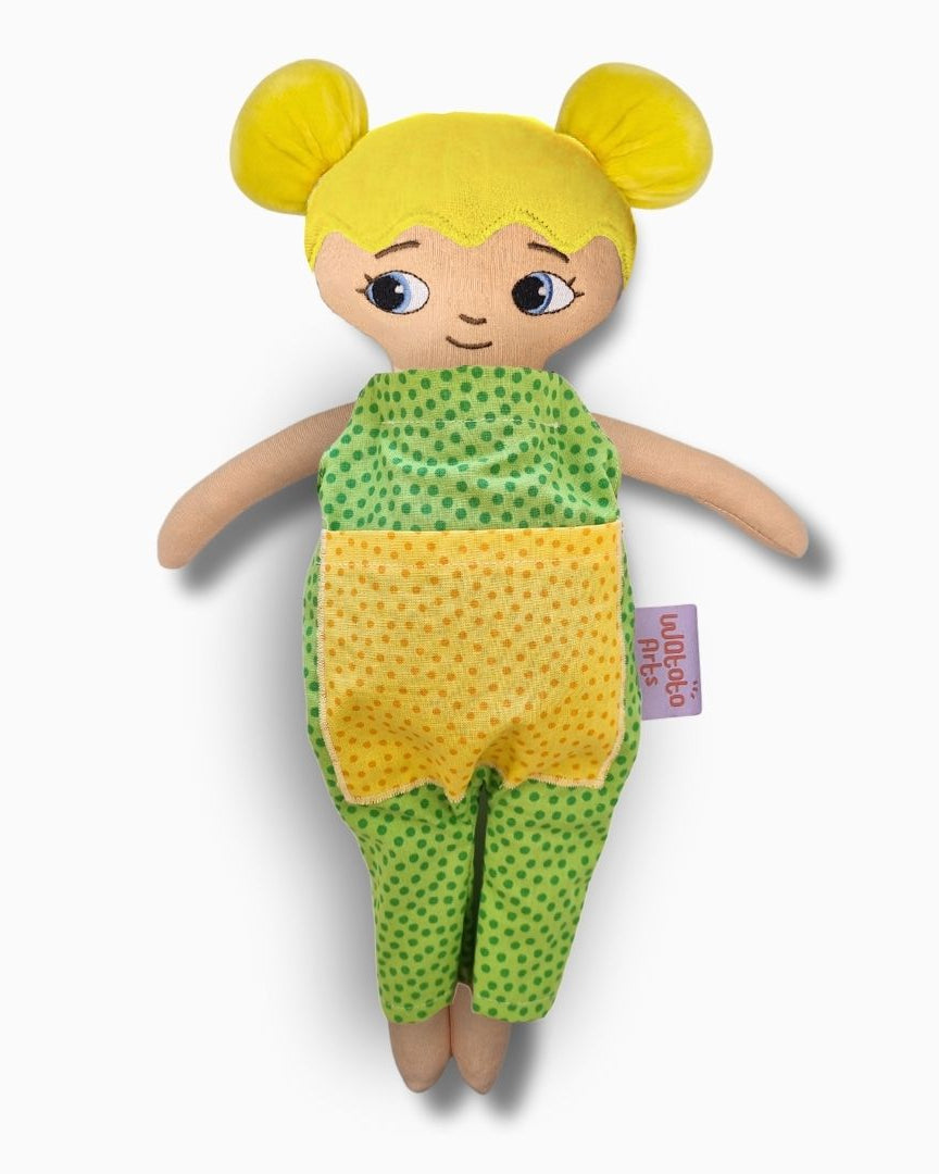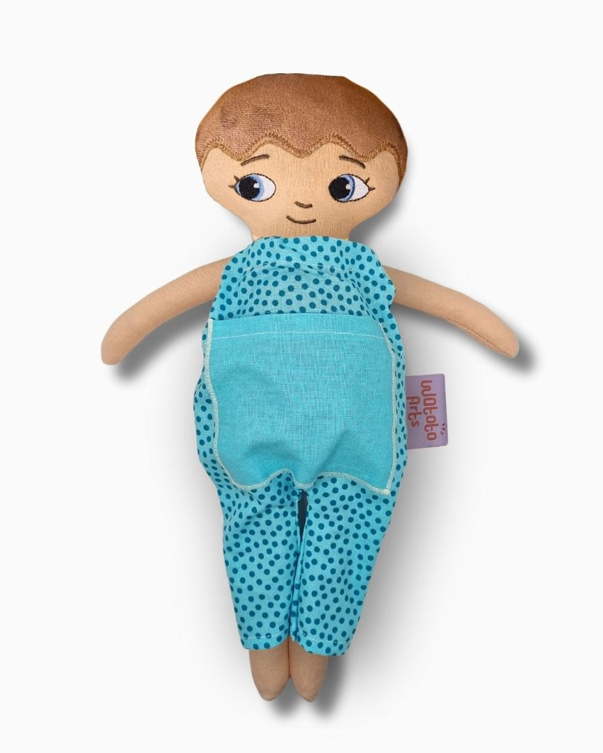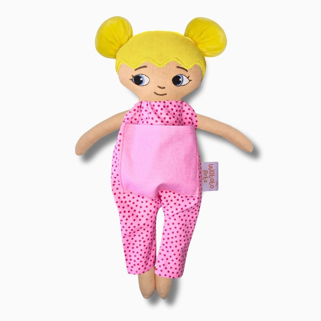 Dockan är bedårande och välgjord och blev mycket uppskattad av mitt barnbarn. Ett stort plus var lillasyster i fickan på magen. Särskilt med tanke på att lillasyster kommer när som helst så blir det abstrakta mer förståeligt när man kan berätta, leka och rollspela. Ett till plus är att dockan är så lik barnbarnet att hon kan identifiera sig med den och kommer ha mycket glädje av den under sin uppväxt.