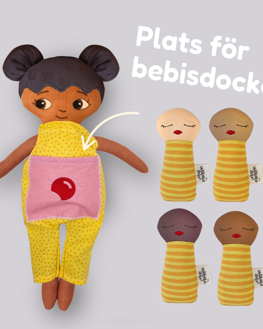 Vi är ett familjeföretag som designar och producerar dockor med fokus på representation, trygghet och lekglädje.