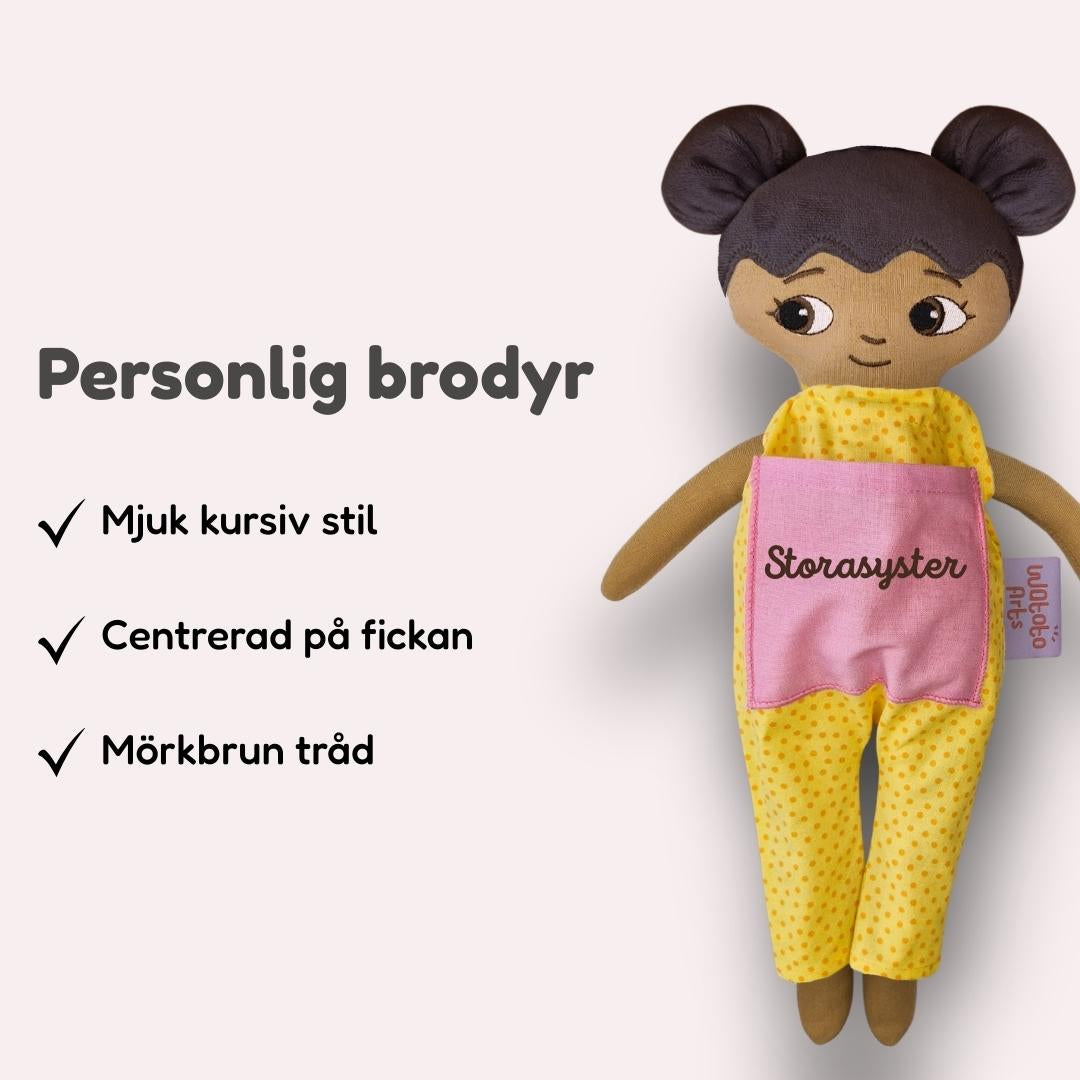 För varje såld docka går 5% av priset till Clowner utan Gränsers viktiga arbete: att sprida skratt och hopp till barn i konflikt- och katastrofdrabbade områden världen över. På dockans kläder har vi broderat en clownnäsa som symboliserar ditt stöd för Clowner utan Gränsers arbete.
