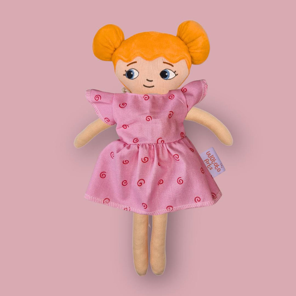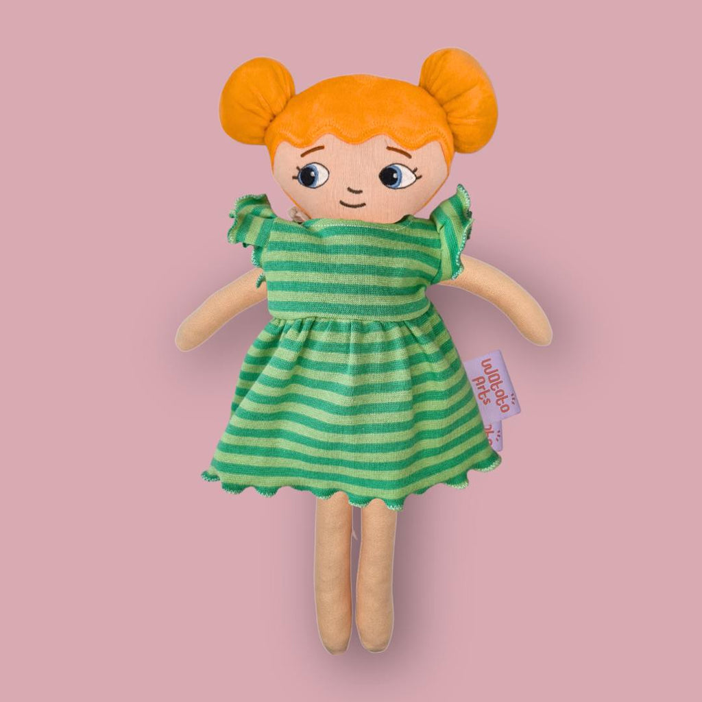 Alva är en mjuk, kramvänlig docka, varsamt tillverkad i Sverige av ekologiska och giftfria tyger. Med sitt varma och snälla uttryck, blir dockan snabbt en trygg och älskad vän för barnet.