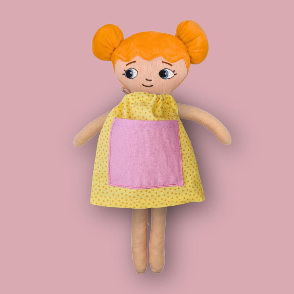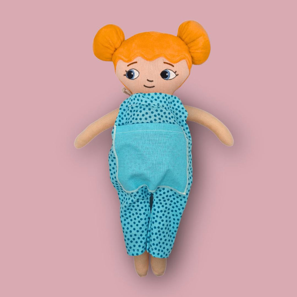 Lägg till en personlig brodyr på dockans ficka – ett namn, ett datum eller ett hjärta ♥️ och skapa ett minne för livet.