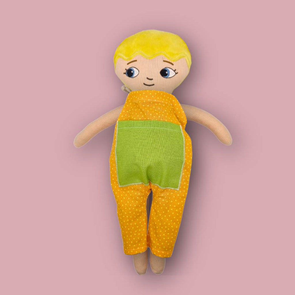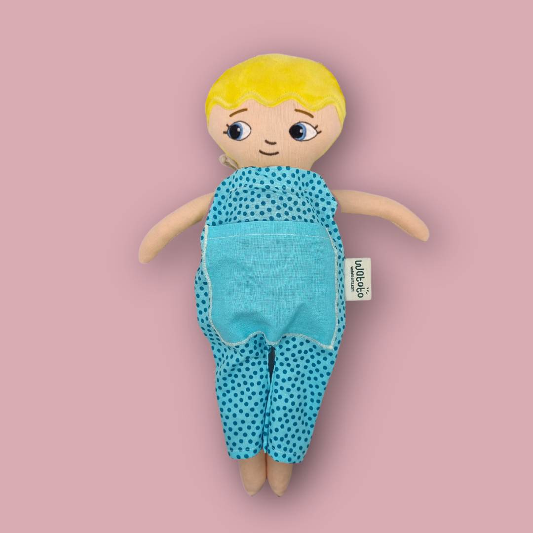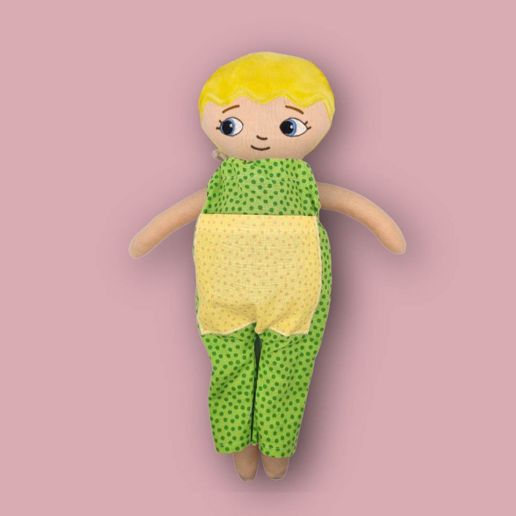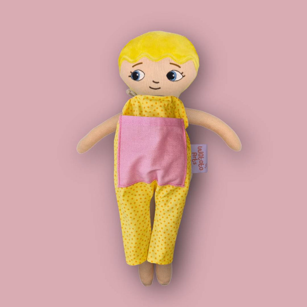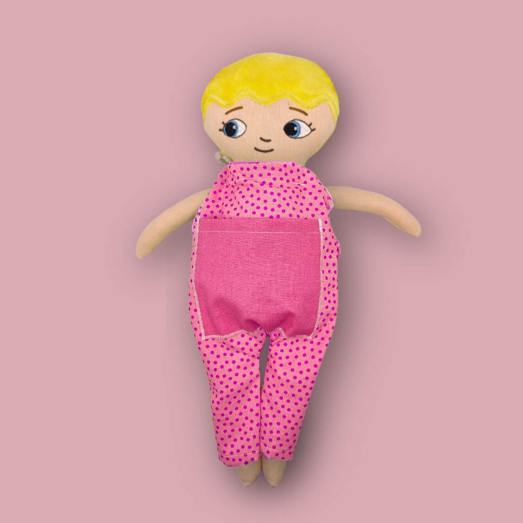 Lägg till en personlig brodyr på dockans ficka – ett namn, ett datum eller ett hjärta ♥️ och skapa ett minne för livet.