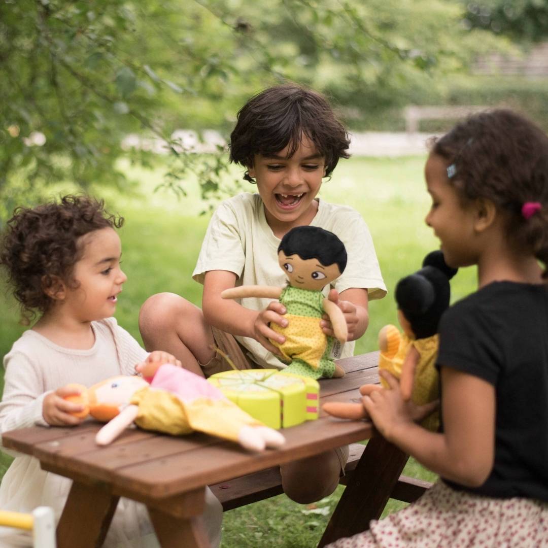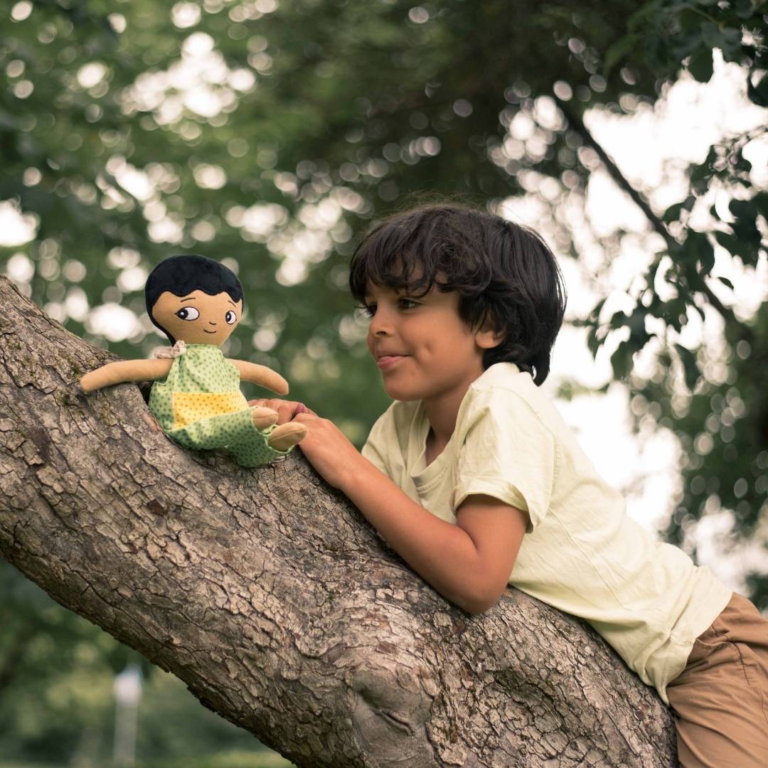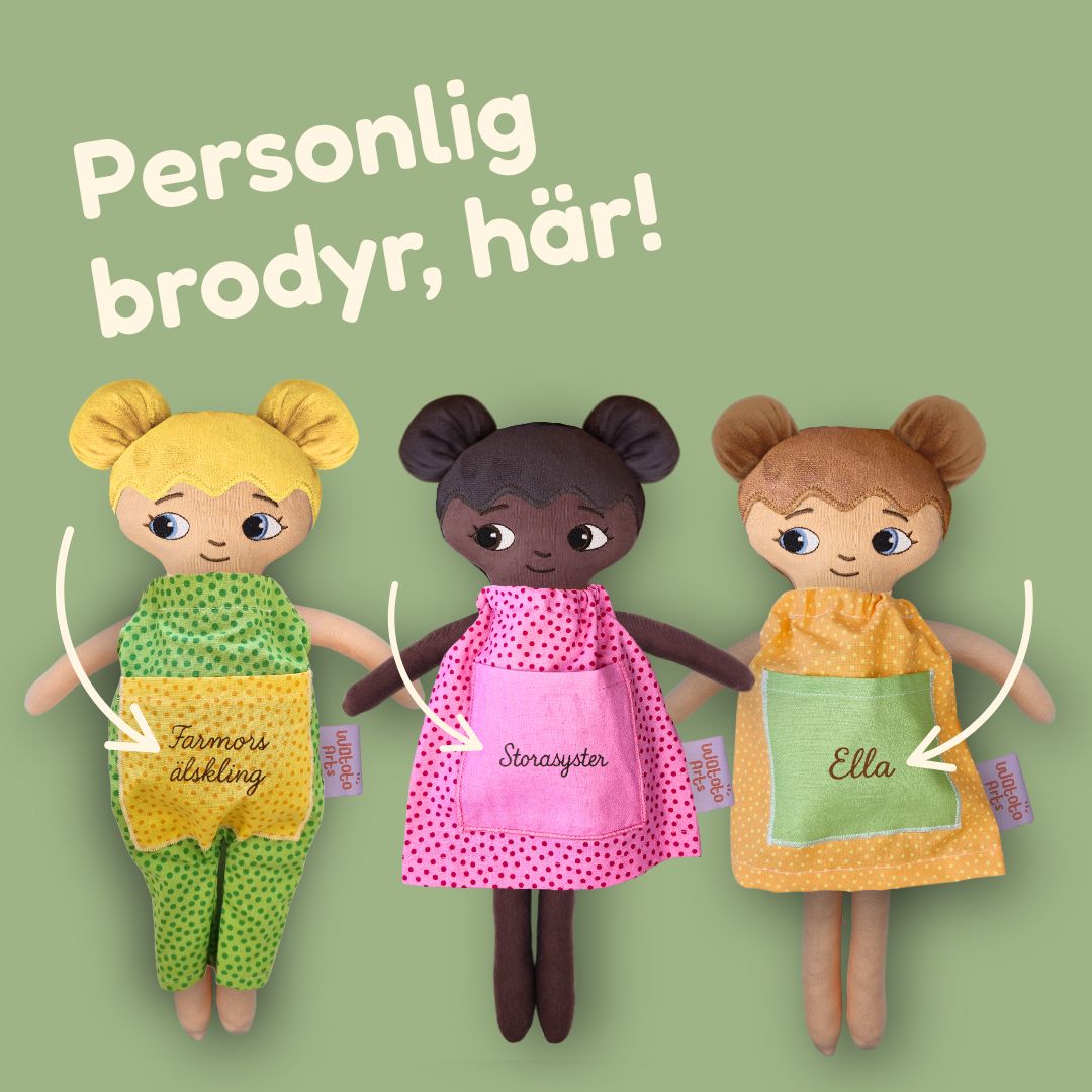 August är en mjuk docka som är 100% tillverkad i Sverige. Dockan är sydd i ekologiska och giftfria tyger. August har brunt hår och bruna ögon som ger ett varmt och tryggt uttryck. En oförglömlig gåva och en underbar docka att få växa upp med.