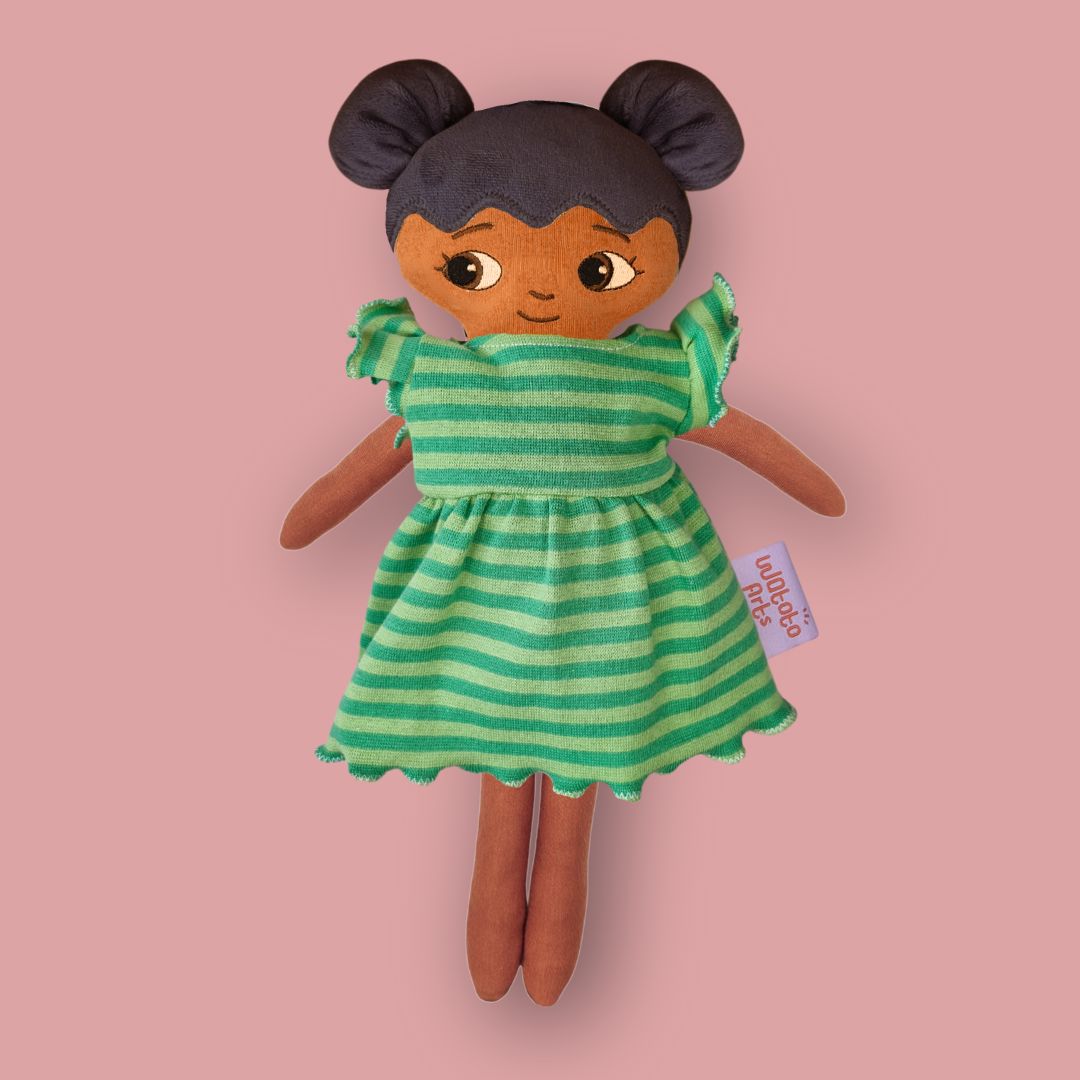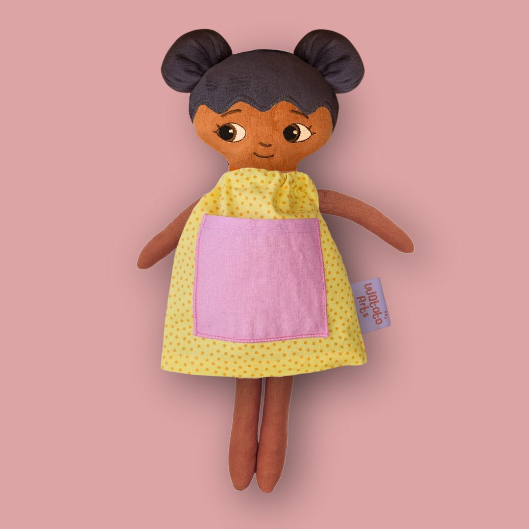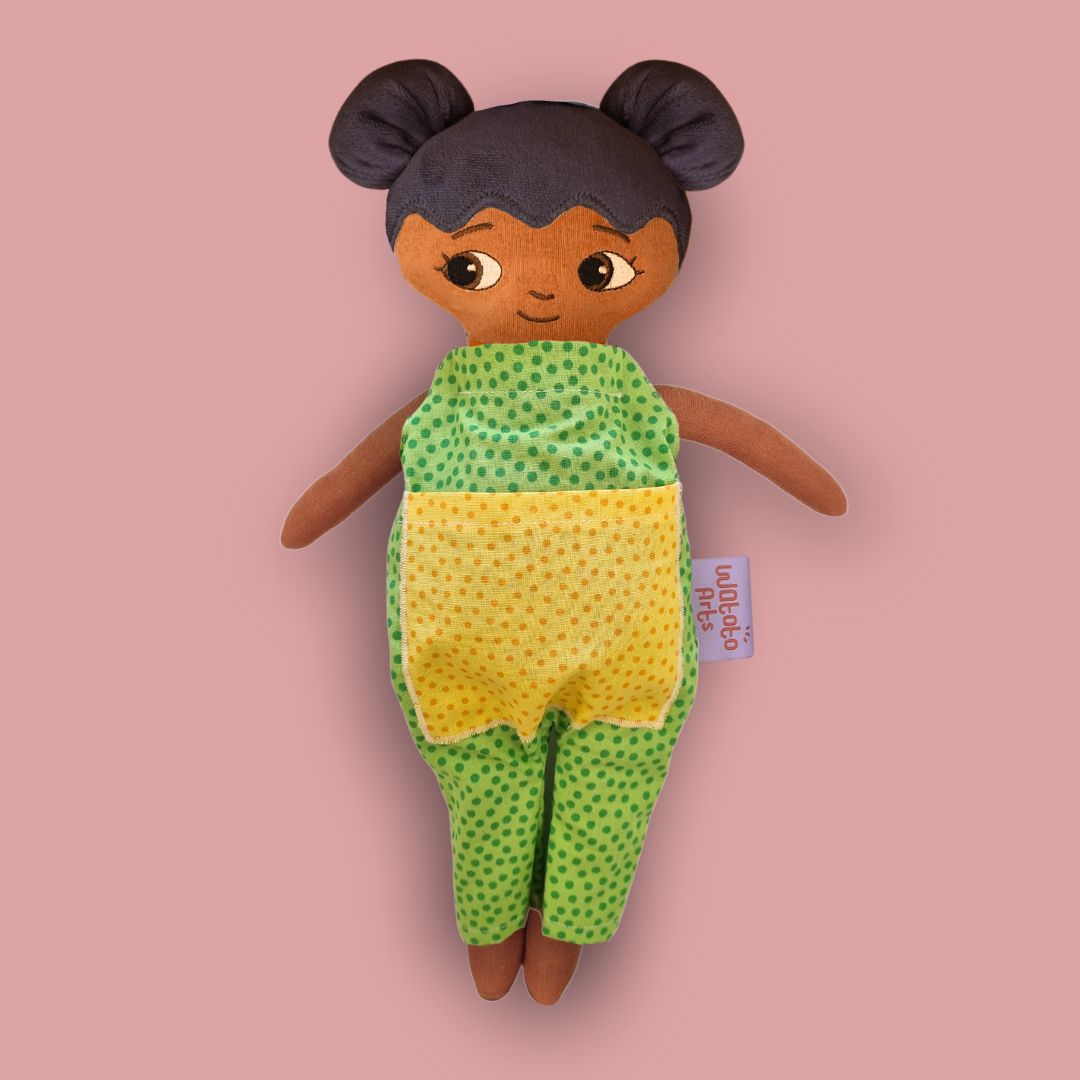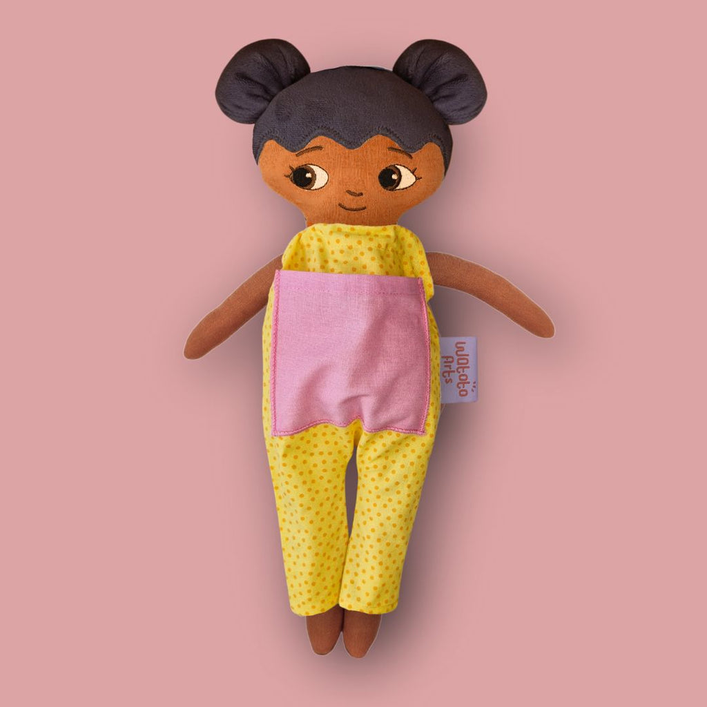 Kombinera din Watoto Arts docka med en valfri bebisdocka. Vi vill fira att alla familjer är olika, bebisdockan behöver därför inte ha samma hudfärg som förälderdockan. Du väljer!