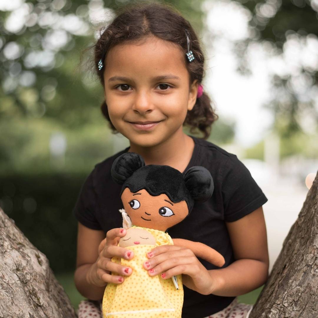 Kombinera din Watoto Arts docka med en valfribebisdocka. Vi vill fira att alla familjer är olika, bebisdockan behöver därför inte ha samma hudfärg som förälderdockan. Du väljer!