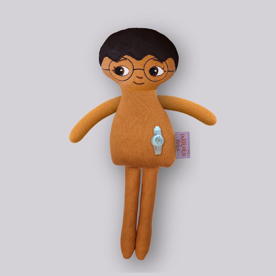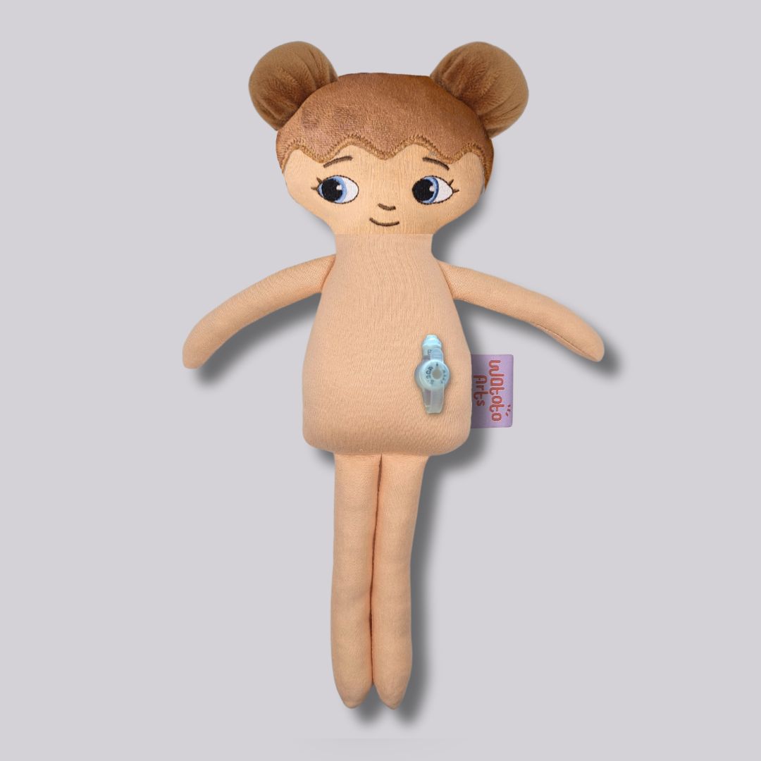 Mjuk docka med gastrostomiknapp/PEG knapp i magen| Watoto Arts