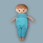 Detta är en mjuk docka som är varsamt handgjord av ekologiska tyger. Dockan har downs syndrom.